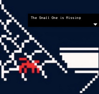 The Small One is Missing is a game about a spider that is looking for her son. Throughout her journey, she will encounter other bugs and she will make decisions that will determine if she finds him or not.